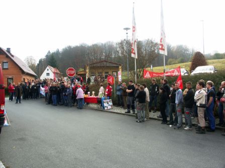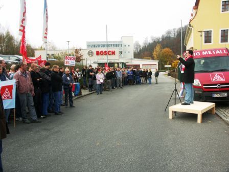 Auch am Standort in Sebnitz führte der Warnstreik von rund 150 Kolleginnen und Kollegen durch alle Beschäftigtengruppen zu einem Stillstand der Bänder.