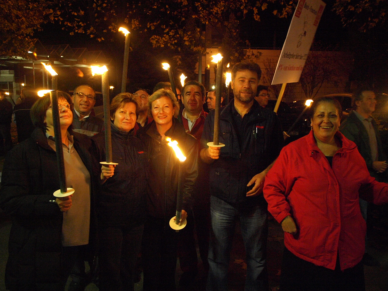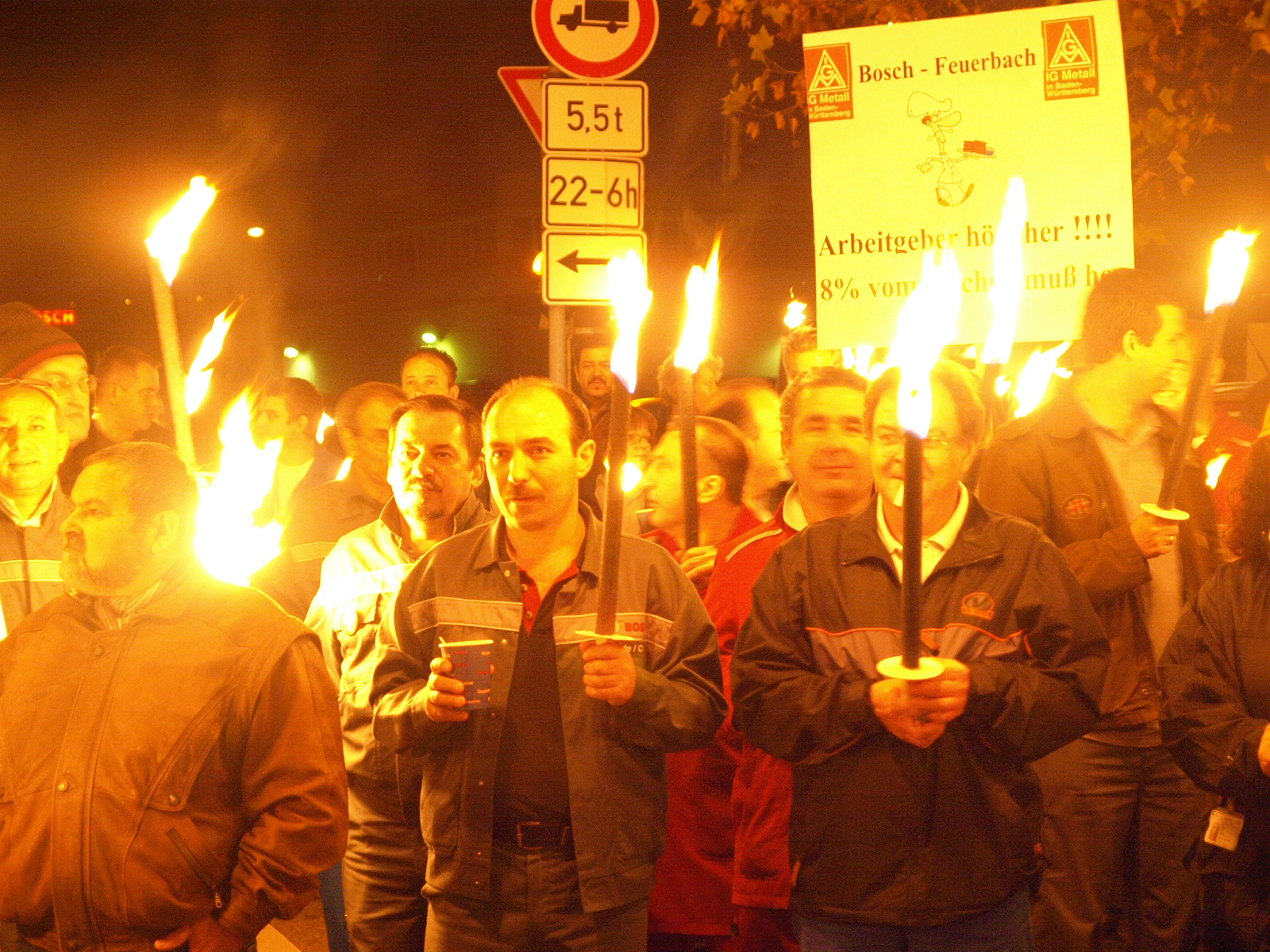 Rund 1500 Beschäftigte aus Feuerbach legten in mehreren Schichten ihre Arbeit nieder. Die Nachtschicht machte klar, dass die Arbeitgeber mit ihrem Tarifangebot im Dunkeln tappen.