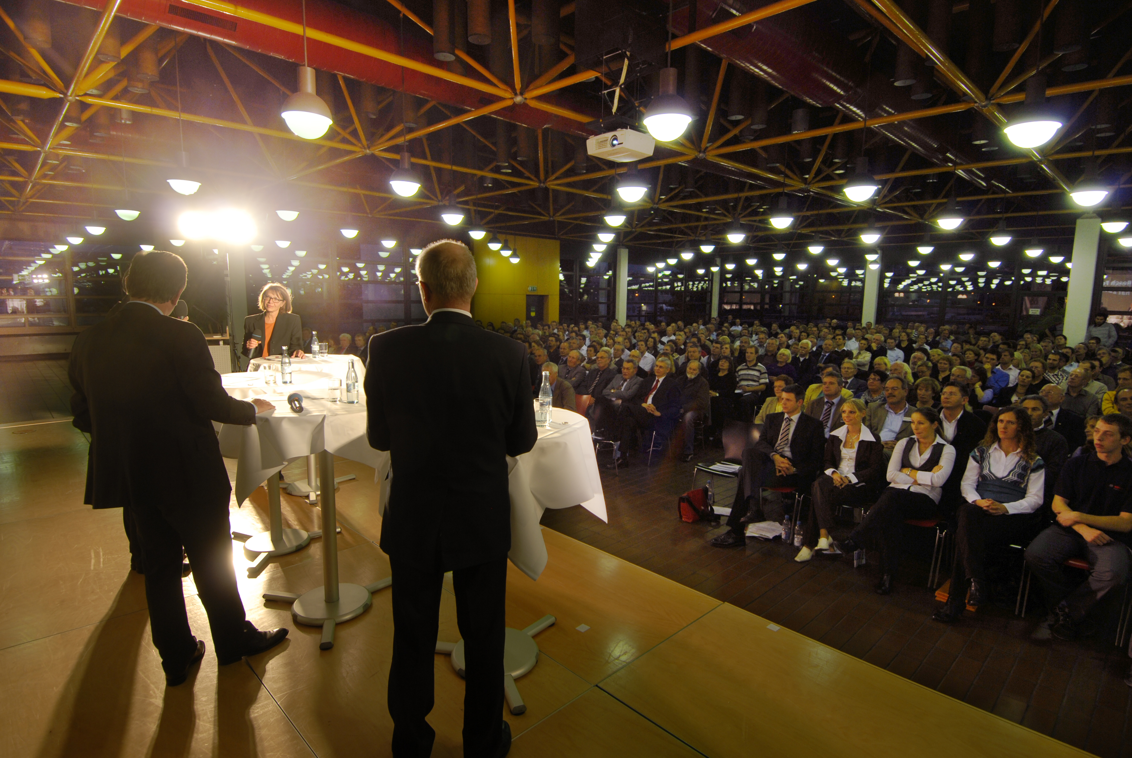 "Was heißt das für die Beschäftigten?", wollte die Moderatorin des Gesprächs, die Journalistin Susanne Stiefel, von Alfred Löckle wissen. Für 2009, so der Konzernbetriebsratsvorsitzende, habe man sich mit