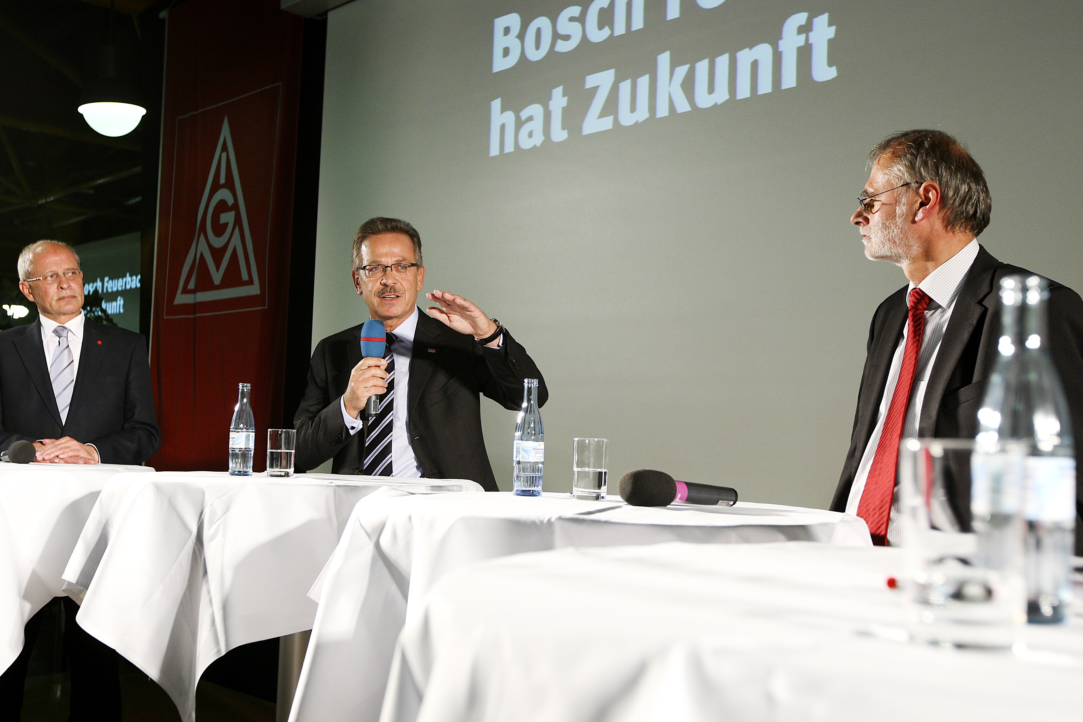 Bei der Podiumsdiskussion mit Bosch-Chef Franz Fehrenbach, Alfred Löckle, Vorsitzender des Gesamt- und Konzernbetriebsrates, sowie dem Vorsitzenden der IG Metall, Berthold Huber ging der Blick in Richtung Zukunft.