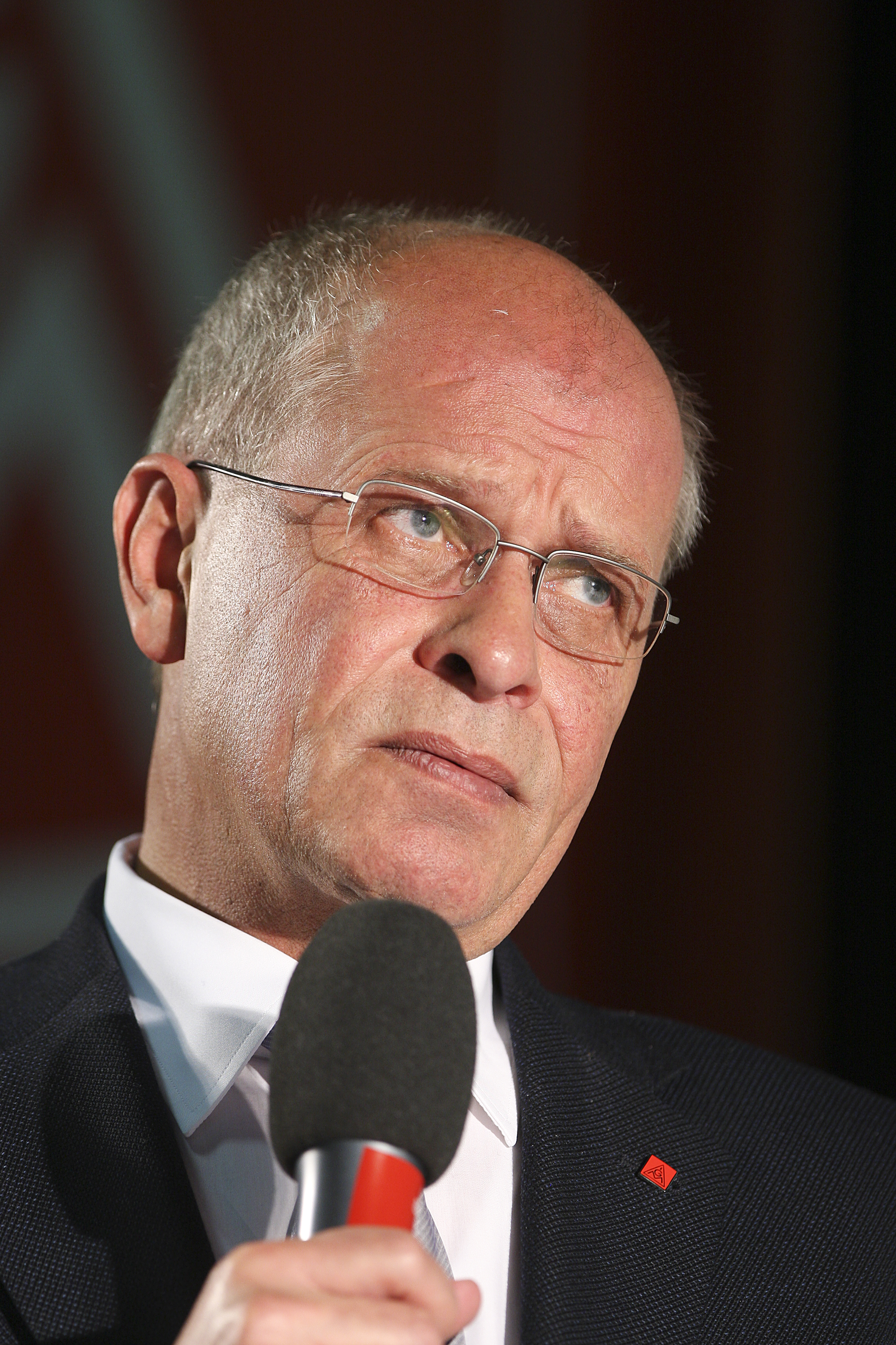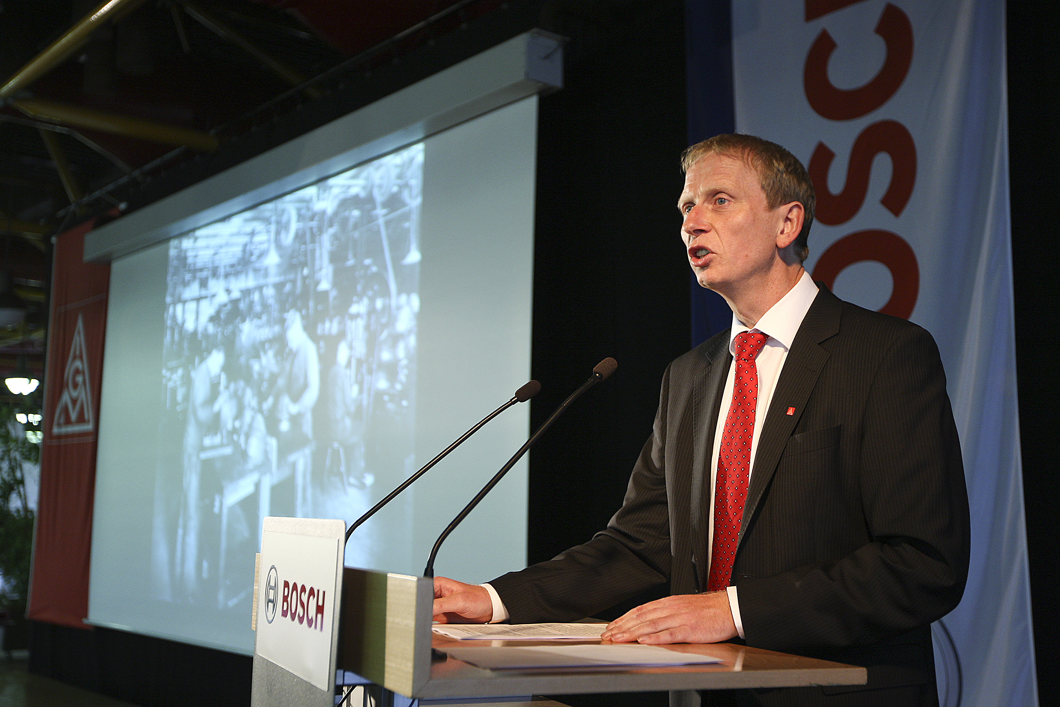 betonte: "Um Beschäftigung zu sichern, müssen wir es schaffen, schneller als der Wettbewerb innovative Produkte auf den Markt zu bringen. Hier hat die Forschung und Entwicklung eine große Verantwortung." IG-Metall-Chef