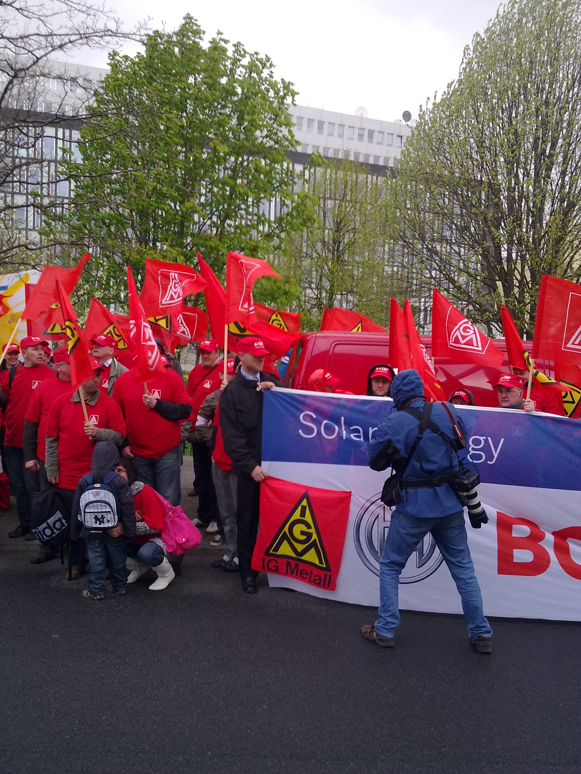 Mit der Realisierung der Kürzungspläne befürchtet die IG Metall den Verlust tausender Arbeitsplätze. Der Protest der Beschäftigten und ihrer Betriebsräte richtet sich gegen die überzogenen Kürzungsabsichten der Vergütungssätze. Die IG Metall fordert von der Bundesregierung eine Politik mit Augenmaß, für eine Zukunft der Solararbeitsplätze in Deutschland und spricht sich dafür aus: