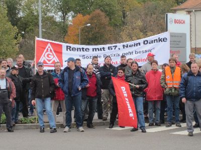 Keine Rente mit 67 und kein ersatzloser Arbeitsplatzabbau fordert Dieter Klein, Betriebsratsvorsitzender der Robert Bosch GmbH.