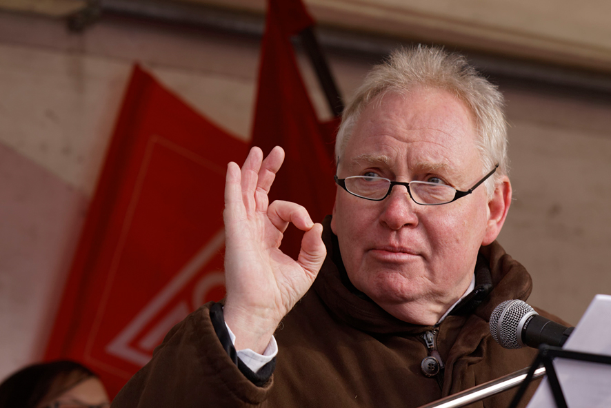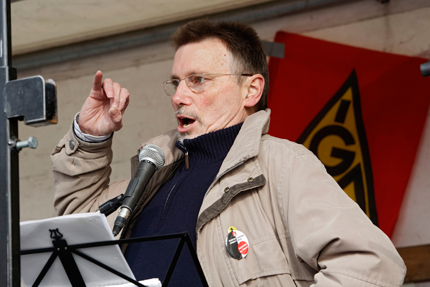 "Wir stehen heute hier, weil nicht hinnehmen wollen, dass in einem der reichsten Länder der Erde immer mehr Menschen, wie im Mittelalter, in das DAseind er Tagelöhner abgedrängt werden", sagte Hans Baur, Erster Bevollmächtigter der IG Metall Stuttgart auf der Kundgebung in Feuerbach. "Jetzt erleben wir einen enormen wirtschaftlichen Aufschwung. Für viele Beschäftigte wird das aber kein Aufwschwung, sondern ein Mehr an Unsicherheit in der Lebensplanung. Das ist grotesk."