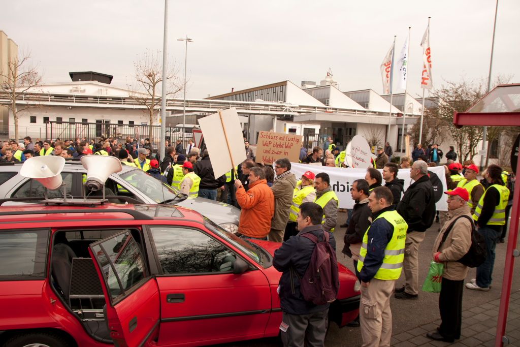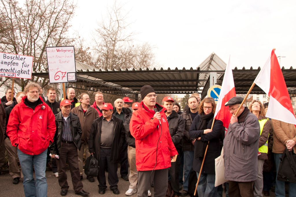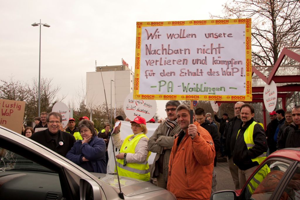 Die Sondierungsgespräche, die im Auftrag des Betriebsrat durch die IGM geführt wurden, waren natürlich ein anderes wichtiges Thema. Trotz Aufforderung der Firmenseite, die Gespräche bis Ende Januar 2011 zu führen, um ein Ergebnis zu bekommen, ob die Rahmenbedingungen für einen Umzug oder Weitererhalt des Standortes in Waiblingen gegeben sind, hat die Arbeitgeberseite dem Betriebsrat und der Belegschaft bis heute keine belastbare, Vorschläge vorgelegt. Die Beschäftigten haben an diesem Aktionstag ihren Unmut auch über diese Situation geäußert und für die Arbeitsplätze und Zukunftsperspektive des Standortes demonstriert.