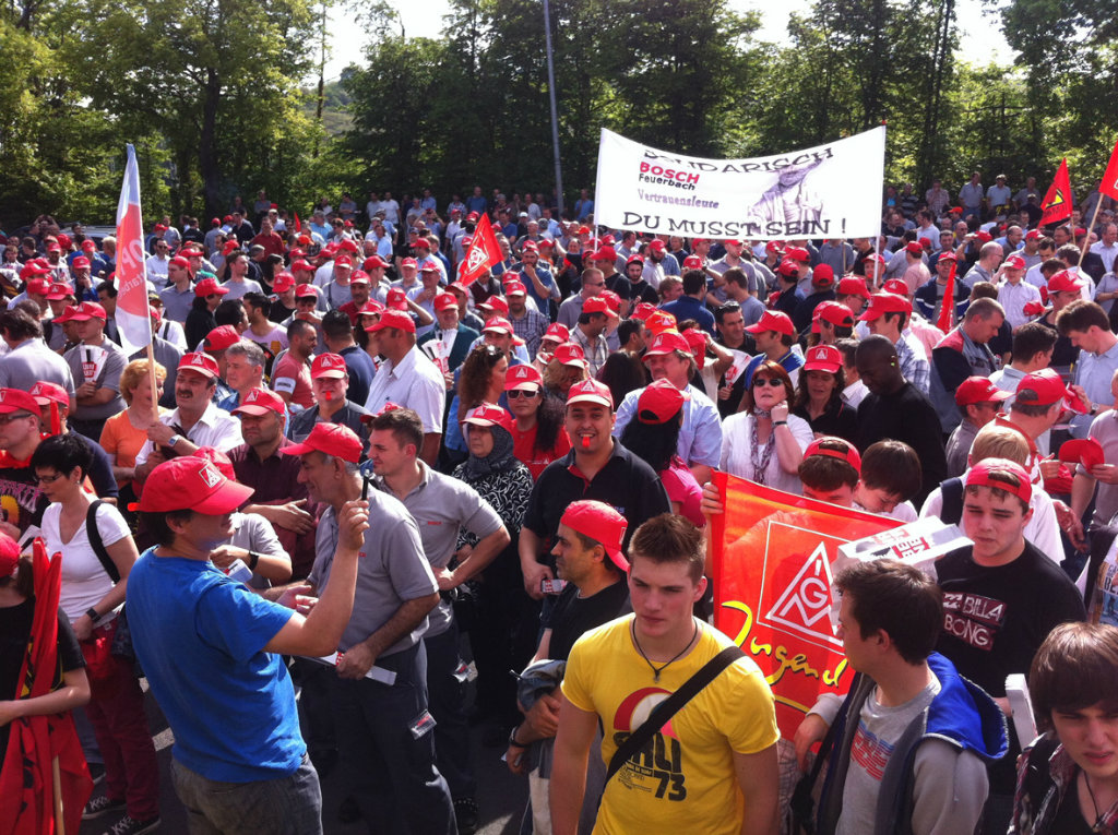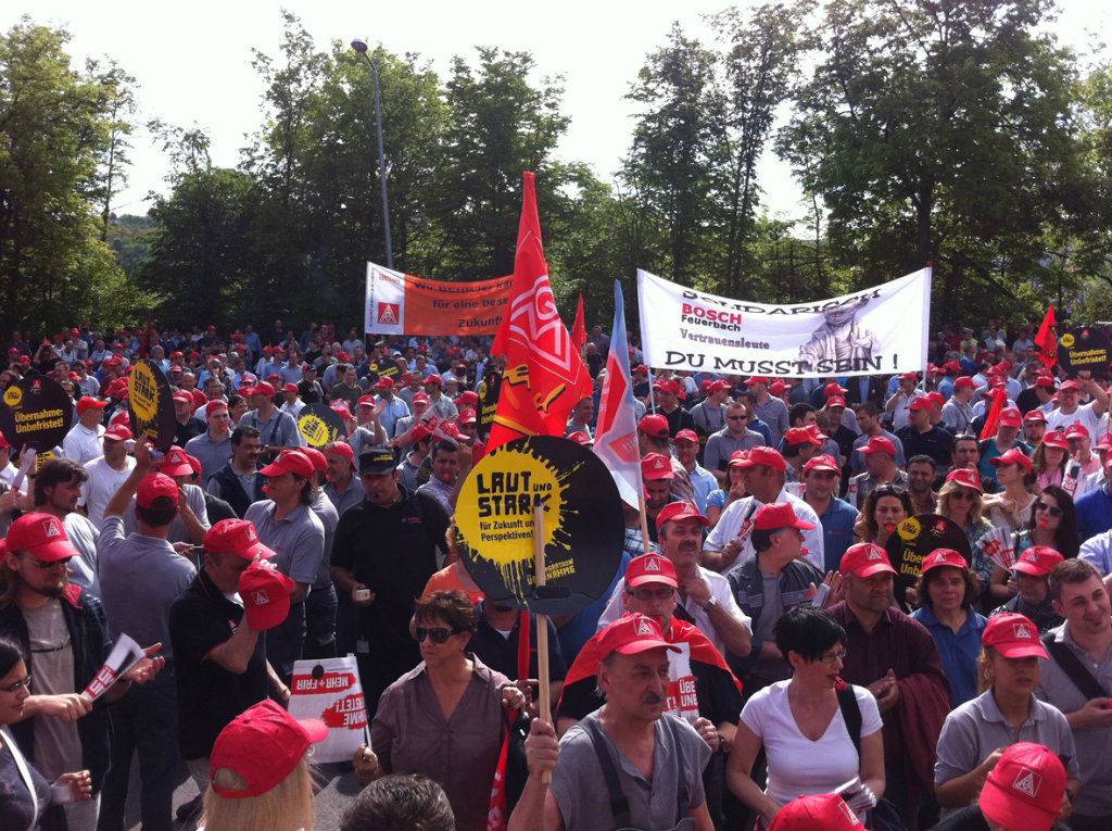 "Mit allen durch die Krise war unser Motto und wir haben unseren Anteil dazu beigetragen. Doch wir wollen eben nicht nur in den schlechten Jahren die Lasten auf alle verteilen und in den guten Jahren streichen nur die Arbeitgeber die Gewinne ein. Wir wollen und wir müssen an den guten Jahren beteiligt werden. Wir haben dazu beigetragen - jetzt sind wir dran" erklärte Frank Sell, stellvertretender Betriebsratsvorsitzender des Bosch-Standortes in Feuerbach.