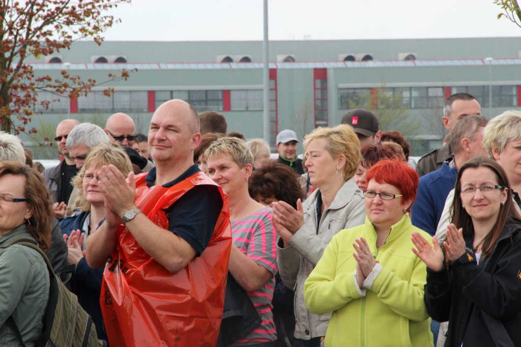 Unterstützt haben uns auch Betriebsräte von Bosch Solar aus Arnstadt. Gleichzeitig haben sie unsere Kolleginnen und Kollegen über die Probleme an ihrem Standort aufgeklärt.