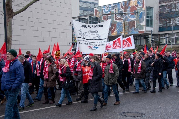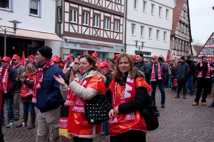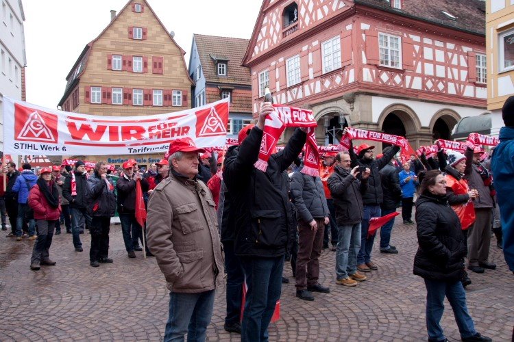 Wir haben uns an der ersten Kundgebung am 26. Januar in Ludwigsburg mit ca. 55 Kolleginnen und Kollegen beteiligt. Nach Ende der Friedenspflicht fanden am 29. Januar im Betrieb zwei Infoveranstaltungen in der Kantine statt. Daran beteiligten sich ca. 120 Kolleginnen und Kollegen der Früh- und ca. 40 der Spätschicht.