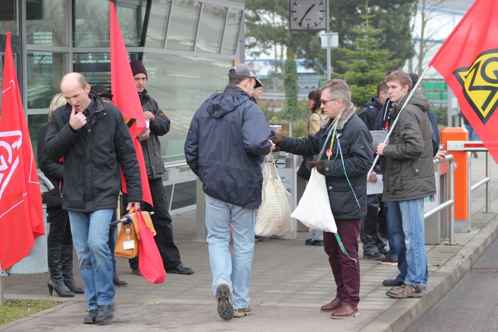 Verteilung Flugblatt Aufruf zum Warnstreik am 12.02..15 ab 20:00 uhr