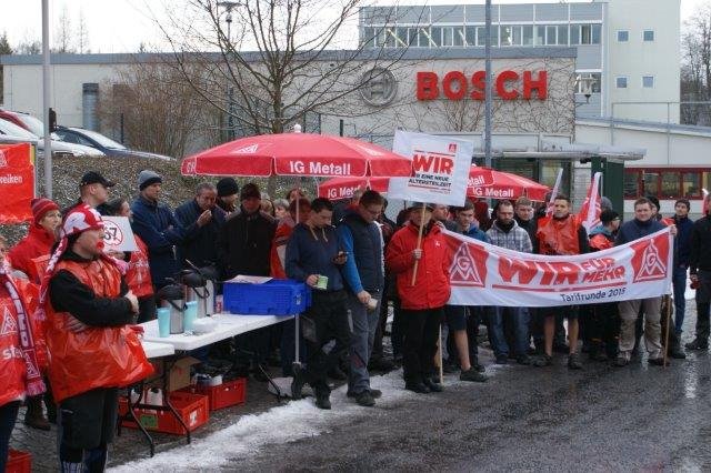 "Wir waren am 03.02. und 11.02 vorm Bosch-Tor. Jede Fertigungsschicht einmal -> Beteiligung somit 250 MA. Uns ist eine neue ATZ am wichtigsten!", so Ruth Wauer.