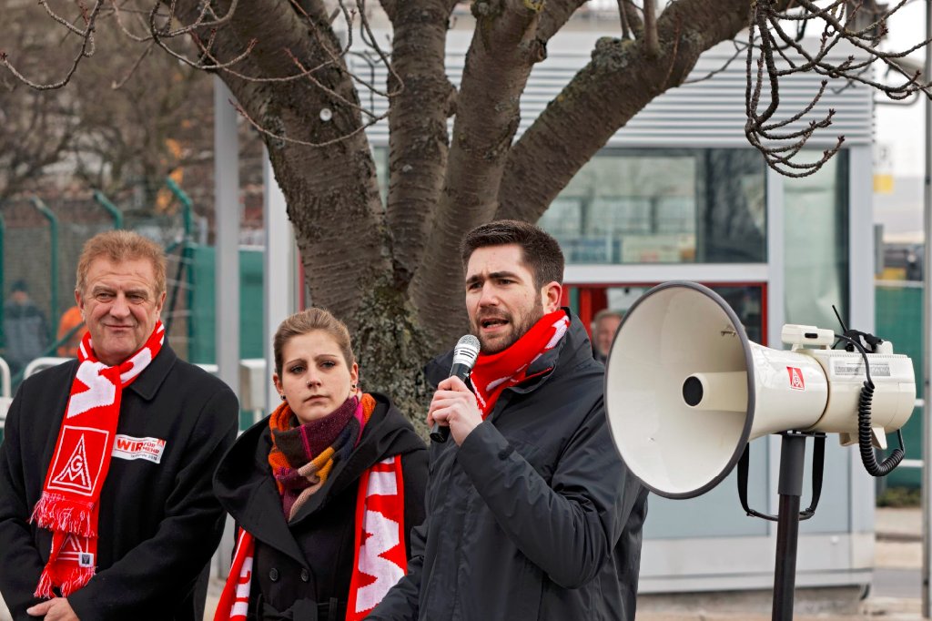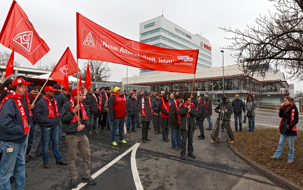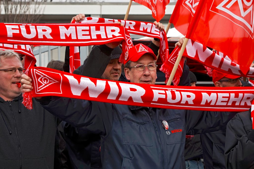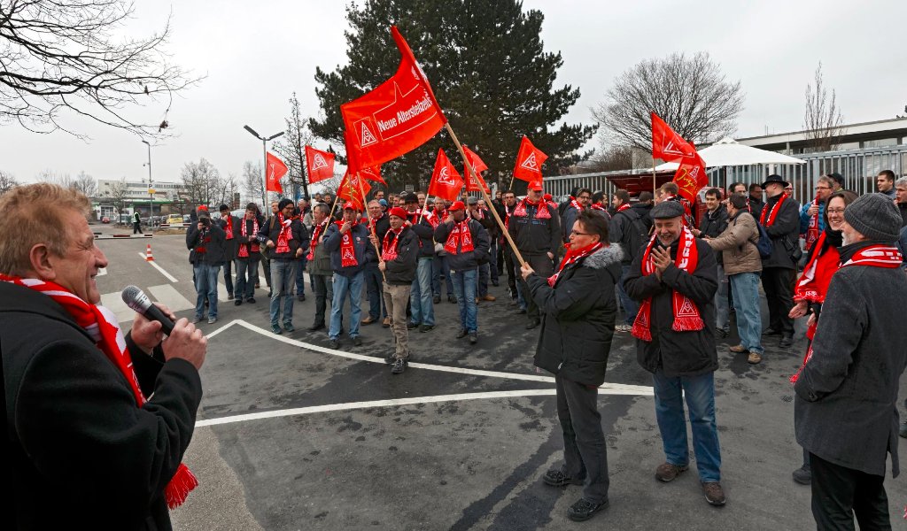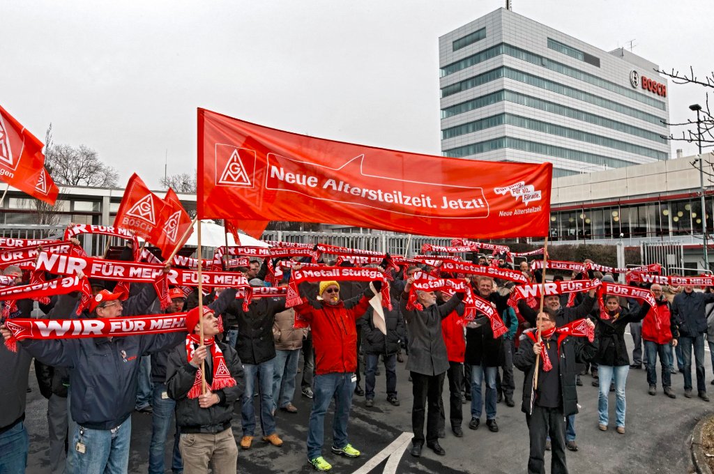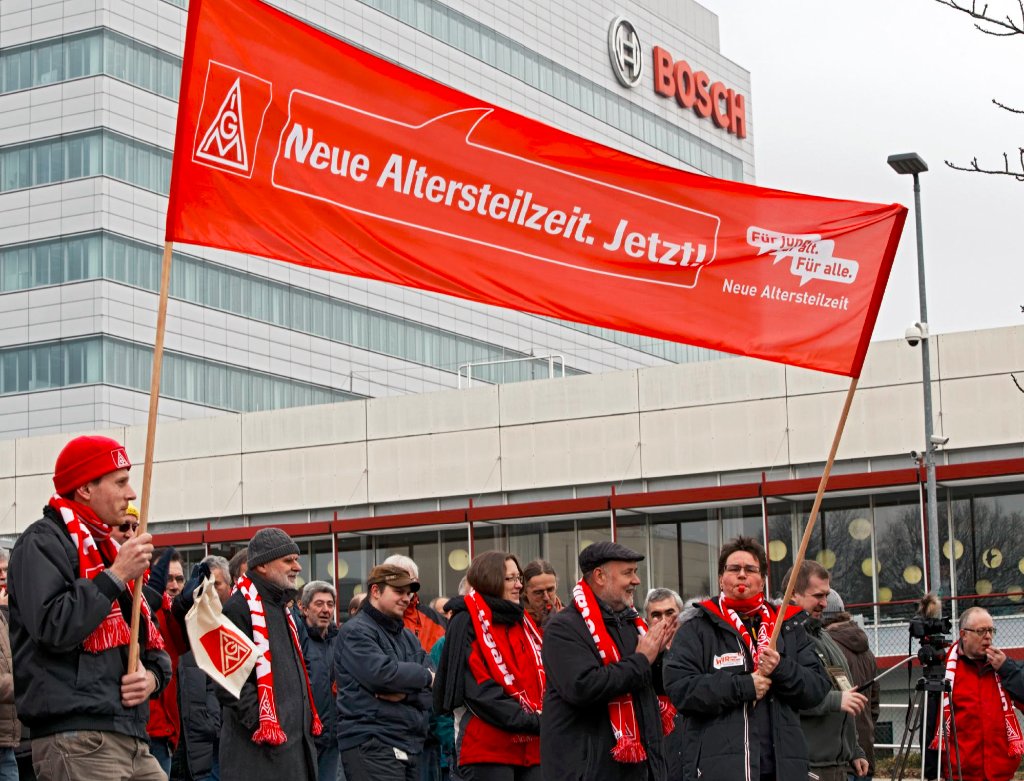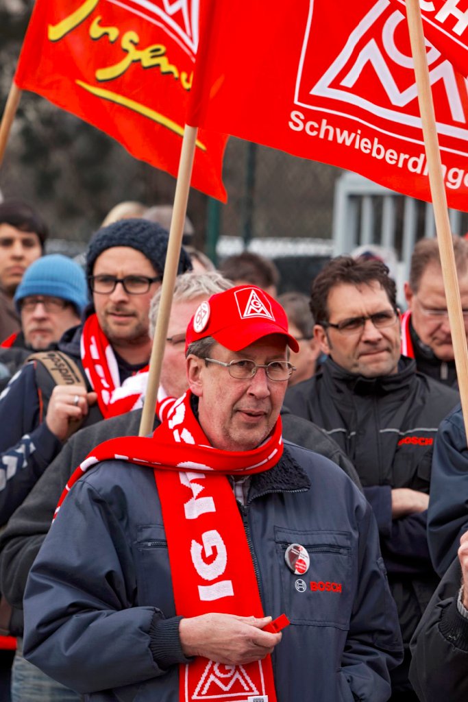 Um 13 Uhr waren die Beschäftigte der Bosch-Standorte in Schwieberdingen und Rutesheim zu Warnstreiks aufgerufen. 250 Metallerinnen und Metaller folgten dem Aufruf und kehrten nach kurzen Kundgebungen nicht mehr an ihre Arbeitsplätze zurück.