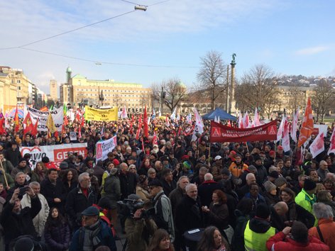 Zu der Kundgebung "halt zusammen - Baden-Württemberg gegen Rassismus und Gewalt" hatte ein landesweites Bündnis aus Gewerkschaften, Arbeitgebern, den großen Kirchen im Land, dem Landesfrauenrat, Jugendverbänden, Wohlfahrts- und Sozialverbänden, dem Sport, allen im Landtag und/oder im Bundestag vertretenen Parteien, politischen Stiftungen, der Islamischen Glaubensgemeinschaft Baden-Württemberg, den Israelitischen Religionsgemeinschaften, dem Flüchtlingsrat und vielen weiteren Organisationen aus der Zivilgesellschaft aufgerufen. Insgesamt haben sich 81 Organisationen dem Bündnis angeschlossen. Hintergrund der Großkundgebung ist die zunehmende Gewalt gegenüber Geflüchteten und das Erstarken rechtspopulistischer Strömungen.